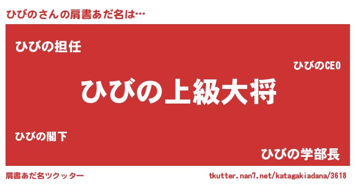 | 胡散臭い通販商品みたいなあだ名 | 『絶対に幸福をもたらす水素水…その名も「ひびの」』 |