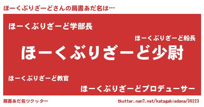 | 男性向けラノベタイトル風あだ名 | 『転生したらほーくぶりざーどだった件』 |