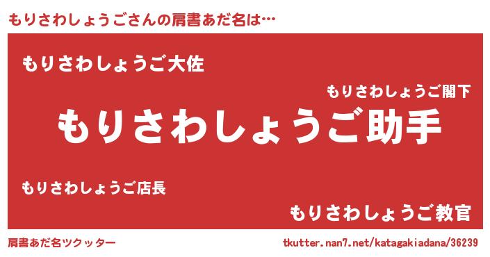 | 男性向けラノベタイトル風あだ名 | 『ノーゲーム・ノーモリサワショウゴ』 |