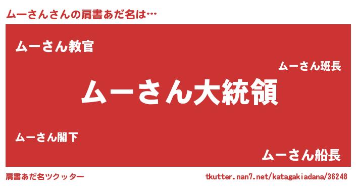 | 女子向けラノベタイトル風あだ名 | 『ムーさん伯爵の花嫁』 |