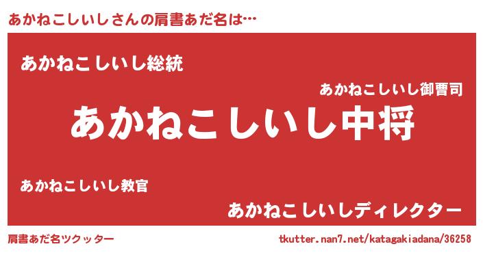| 男性向けラノベタイトル風あだ名 | 『転生したらあかねこしいしだった件』 |