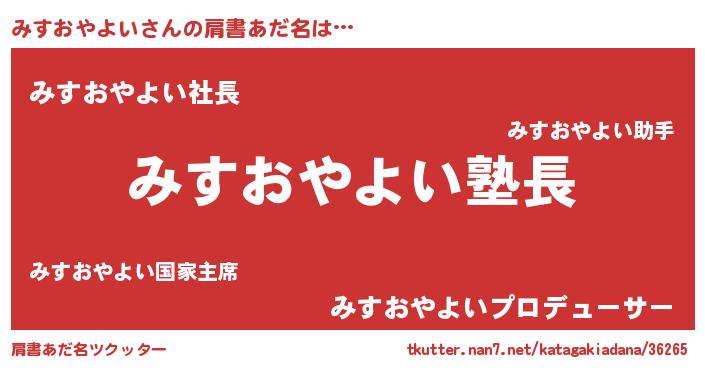 | 意味不明あだ名 | 『とにかく怪しいみすおやよい』 |
