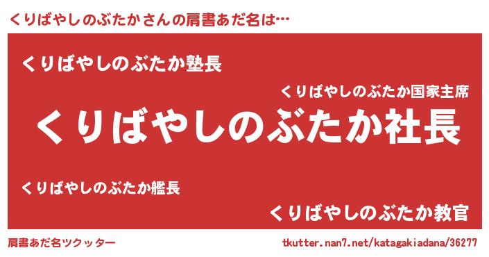 | 男性向けラノベタイトル風あだ名 | 『くりばやしのぶたかの憂鬱』 |