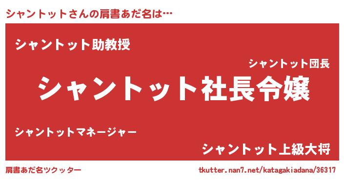 | 胡散臭い通販商品みたいなあだ名 | 『億万長者になれる水晶球…その名も「シャントット」』 |