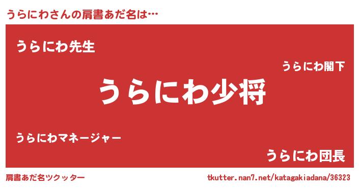 | 男性向けラノベタイトル風あだ名 | 『転生したらうらにわだった件』 |