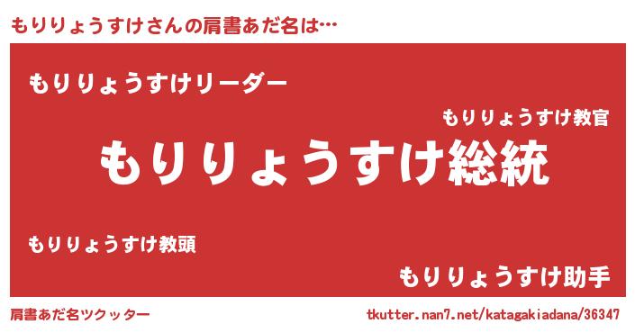 | 女子向けラノベタイトル風あだ名 | 『もりりょうすけなんてお断りですっ。』 |
