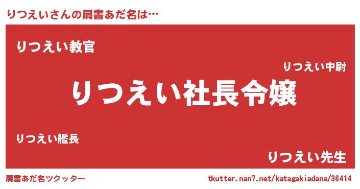 | 男性向けラノベタイトル風あだ名 | 『りつえいの憂鬱』『魔弾の王とりつえい』 |