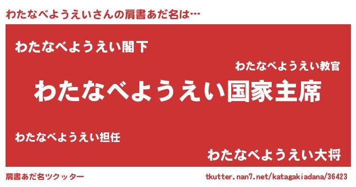 | 意味不明あだ名 | 『わたなべようえいフォーエバー』 |
