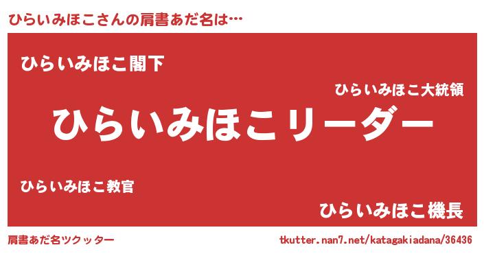 | 意味不明あだ名 | 『とにかく怪しいひらいみほこ』 |