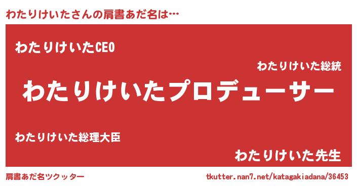 | 男性向けラノベタイトル風あだ名 | 『わたりけいたに滅ぼされるだけの簡単なお仕事です』 |