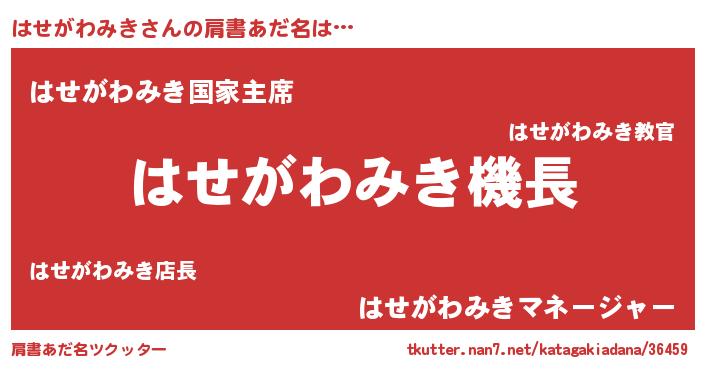 | 欧米人風あだ名 | 『はせがわみき・ステッグマイヤー』 |