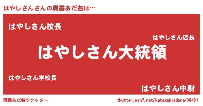 | 女子向けラノベタイトル風あだ名 | 『はやしさんの雑貨屋さん』 |