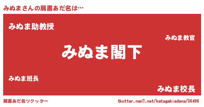 | ヘコむあだ名 | 『みぬま(小並感)』『みぬを』 |