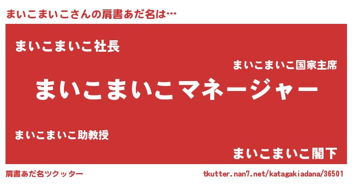| 男性向けラノベタイトル風あだ名 | 『まいこまいこに滅ぼされるだけの簡単なお仕事です』 |