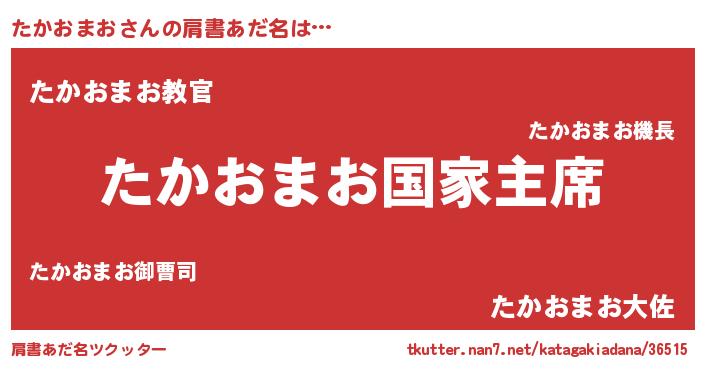 | 欧米人風あだ名 | 『たかおまおクリステル』 |