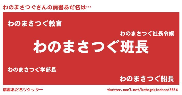 | 女子向けラノベタイトル風あだ名 | 『わのまさつぐ様がみてる』 |