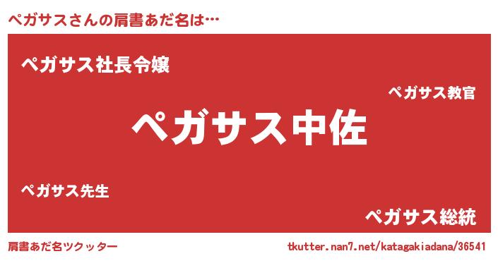 | 男性向けラノベタイトル風あだ名 | 『転生したらペガサスだった件』 |