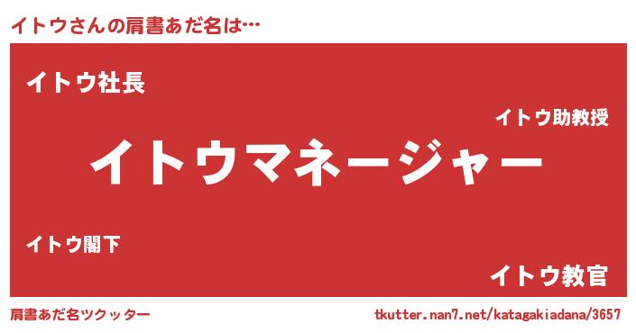 | 男性向けラノベタイトル風あだ名 | 『はたらくイトウさま!』 |