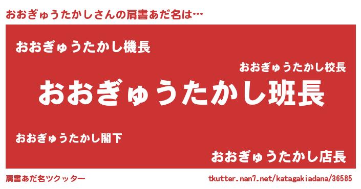| 女子向けラノベタイトル風あだ名 | 『おおぎゅうたかし様がみてる』 |