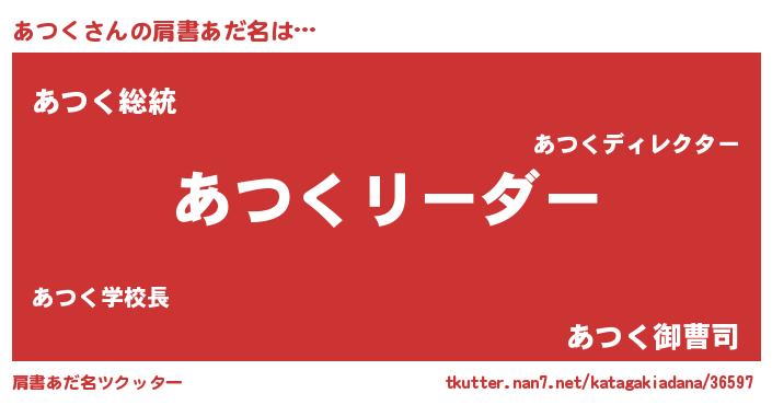 | 意味不明あだ名 | 『とにかく怪しいあつく』『自称あつく』 |