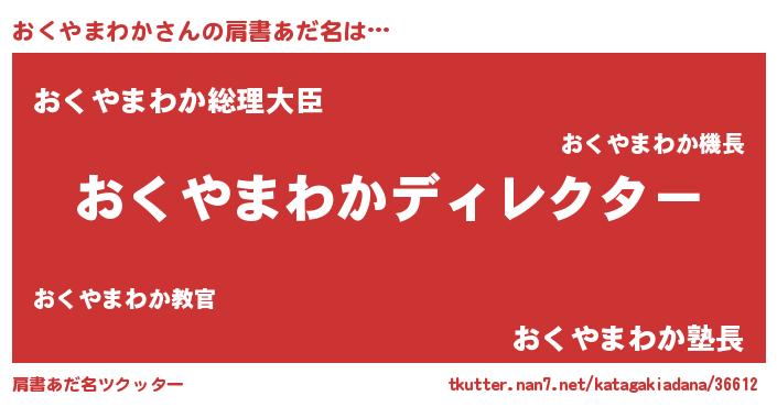 | 男性向けラノベタイトル風あだ名 | 『おくやまわかに滅ぼされるだけの簡単なお仕事です』 |