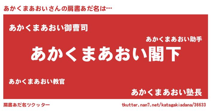 | 意味不明あだ名 | 『自称あかくまあおい』 |