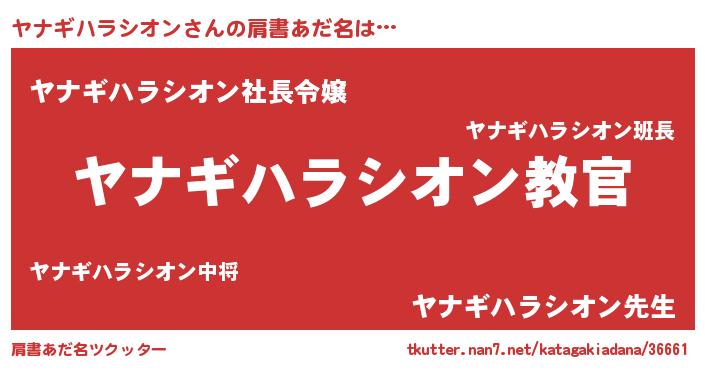 | 男性向けラノベタイトル風あだ名 | 『この素晴らしい世界にヤナギハラシオンを!』 |