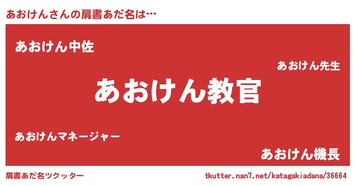 | 男性向けラノベタイトル風あだ名 | 『魔弾の王とあおけん』 |