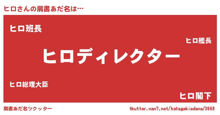 | 意味不明あだ名 | 『とにかく怪しいヒロ』『自称ヒロ』 |