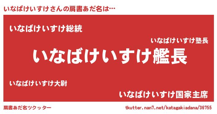 | 男性向けラノベタイトル風あだ名 | 『うちのいなばけいすけが世界を掌握している!』 |