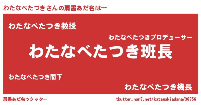 | 意味不明あだ名 | 『とにかく怪しいわたなべたつき』 |