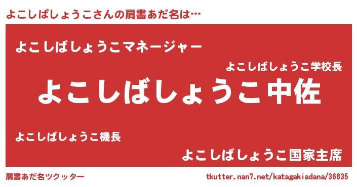 | 男性向けラノベタイトル風あだ名 | 『転生したらよこしばしょうこだった件』 |