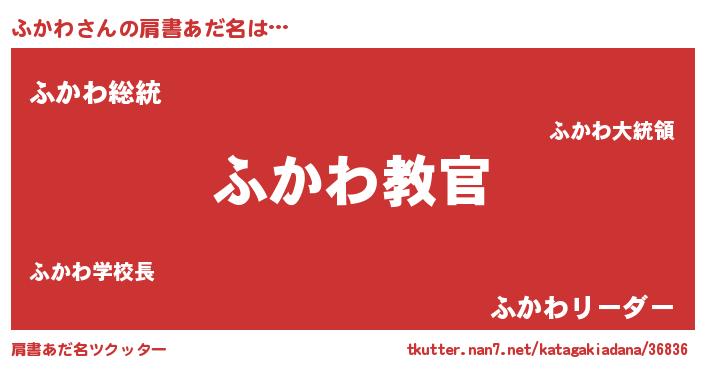 | 男性向けラノベタイトル風あだ名 | 『魔弾の王とふかわ』 |