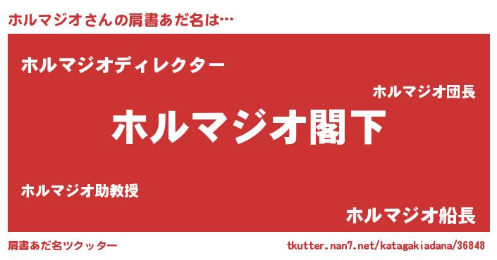 | 男性向けラノベタイトル風あだ名 | 『Re:ホルマジオから始める異世界生活』 |