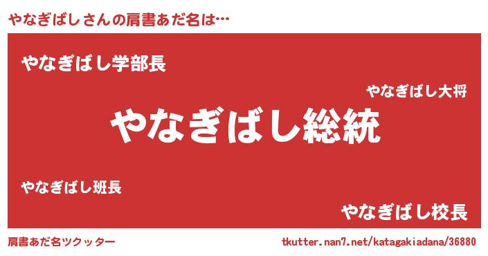 | 意味不明あだ名 | 『自称やなぎばし』『永久保存やなぎばし』 |
