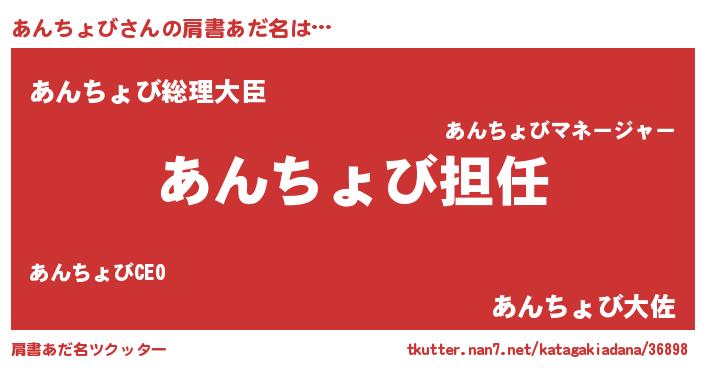| ヘコむあだ名 | 『あんちょび(苦笑)』『酢こんぶ』 |
