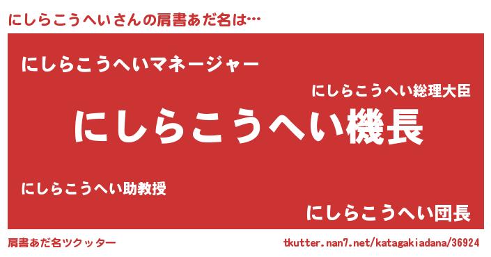 | 意味不明あだ名 | 『とにかく怪しいにしらこうへい』 |