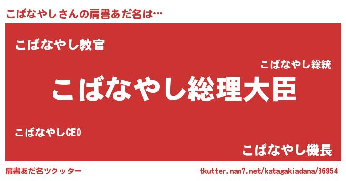 | 女子向けラノベタイトル風あだ名 | 『こばなやしの雑貨屋さん』 |