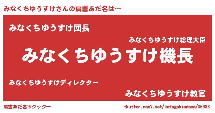 | 欧米人風あだ名 | 『みなくちゆうすけ・ステッグマイヤー』 |
