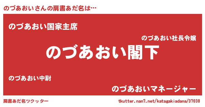 | 男性向けラノベタイトル風あだ名 | 『Re:のづあおいから始める異世界生活』 |