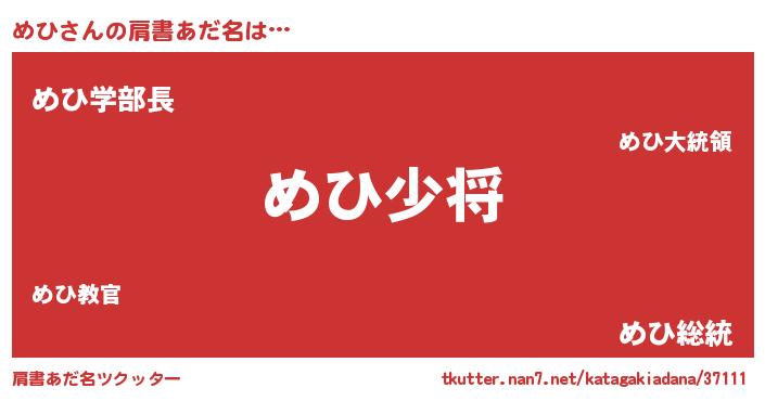 | 男性向けラノベタイトル風あだ名 | 『メヒスレイヤー』『魔法科高校のめひ』 |
