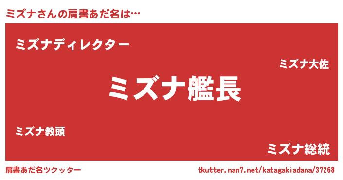 | 意味不明あだ名 | 『自称ミズナ』『めかぶ科ミズナ属』 |