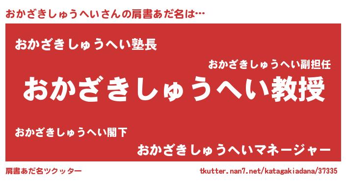 | 胡散臭い通販商品みたいなあだ名 | 『100人中100人が認めたマグネット磁石…その名も「おかざきしゅうへい」』 |