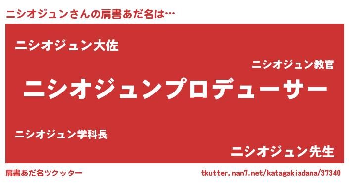 | 男性向けラノベタイトル風あだ名 | 『ニシオジュンに滅ぼされるだけの簡単なお仕事です』 |