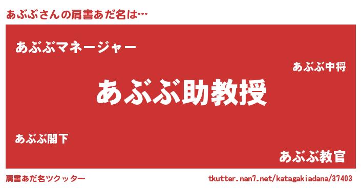 | 男性向けラノベタイトル風あだ名 | 『ノーゲーム・ノーアブブ』 |