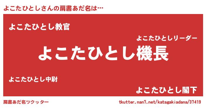 | 男性向けラノベタイトル風あだ名 | 『うちのよこたひとしが世界を掌握している!』 |