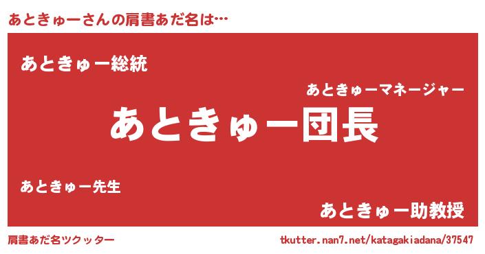 | 女子向けラノベタイトル風あだ名 | 『あときゅーは平凡を望む』 |