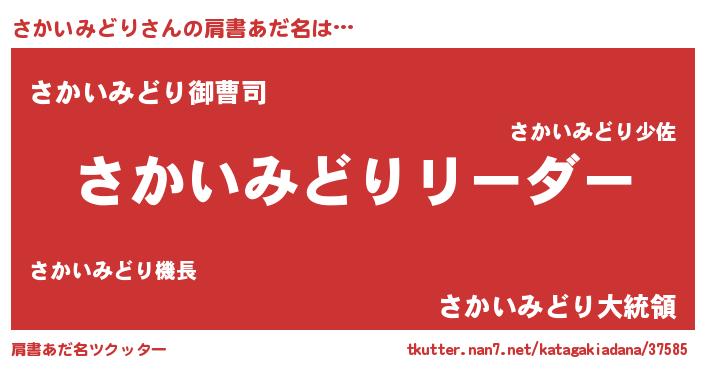 | 男性向けラノベタイトル風あだ名 | 『さかいみどりの嫁は女の子じゃないと思った?』 |