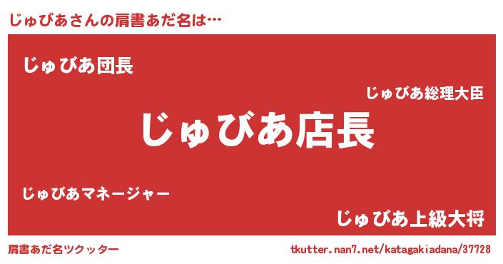 | ポケモン風あだ名 | 『ジュチュウ』『ヒジュビア』 |