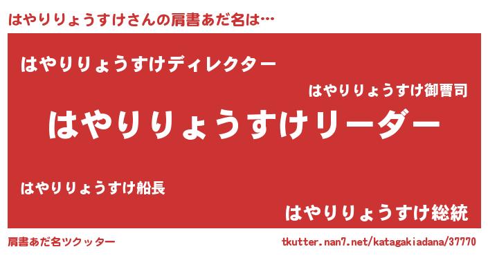 | 男性向けラノベタイトル風あだ名 | 『はやりりょうすけの嫁は女の子じゃないと思った?』 |